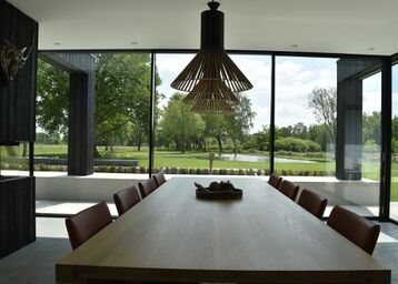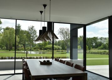 Deze woning toont hoe zwarte aluminium elementen, gecombineerd met glas en maatwerk, zorgen voor een luxueuze, lichte en open woonbeleving, waarin design en comfort hand in hand gaan.