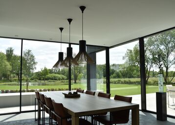 Deze woning toont hoe zwarte aluminium elementen, gecombineerd met glas en maatwerk, zorgen voor een luxueuze, lichte en open woonbeleving, waarin design en comfort hand in hand gaan.